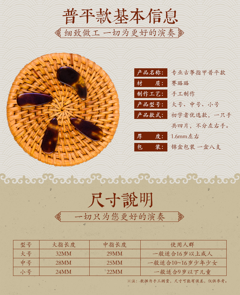 箏の爪は天然の平面の箏をまだねて爪を練習します。大人の子供供の大中トラトの爪は一箱8本の溝を詰めます。