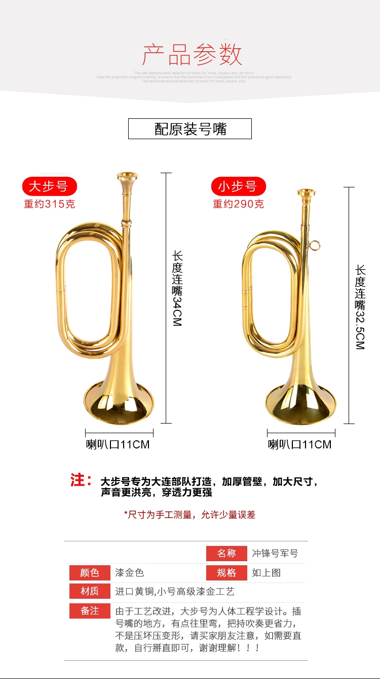 突撃号のミリタリー音楽器の旧式のラッピングスタジオ。赤の军具のラッパと黄铜の大きさの歩号の震え音の小さ歩号(32*11)290グリムの金は赤い布を配合します。
